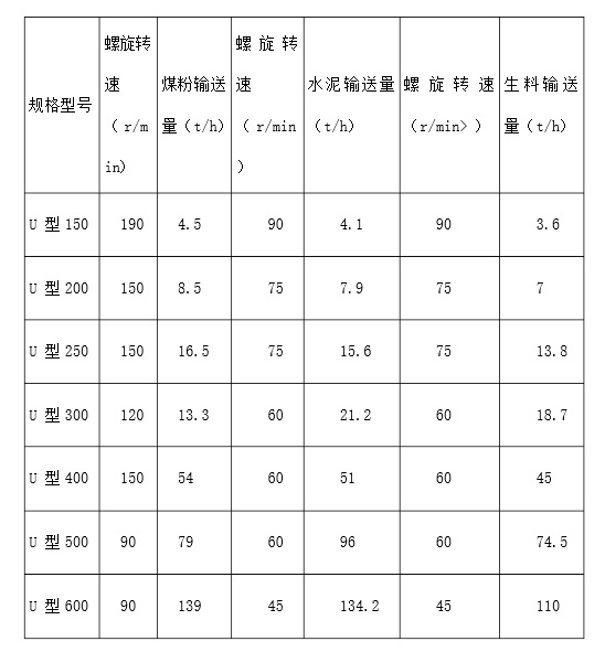 U型螺旋輸送機型號及參數